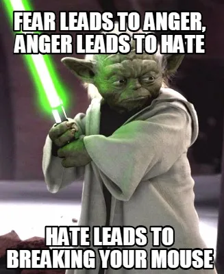 Fear leads to Anger, Anger leads to hate Hate leads to breaking your mouse Meme Template