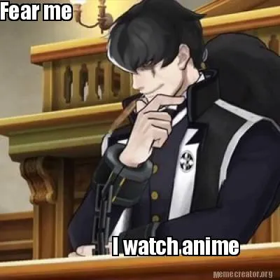 Make your own "Fear me I watch anime" meme with MemeCreator's free online meme generator. Add text, stickers, and drawings — then download or share. No watermark, no sign-up required.