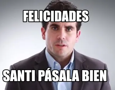 Make your own "Felicidades Santi pásala bien" meme with MemeCreator's free online meme generator. Add text, stickers, and drawings — then download or share. No watermark, no sign-up required.