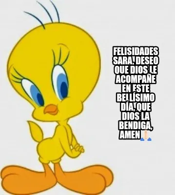 Funny Felisidades Sara, deseo que dios le acompañe en este bellísimo día, que dios Meme Template