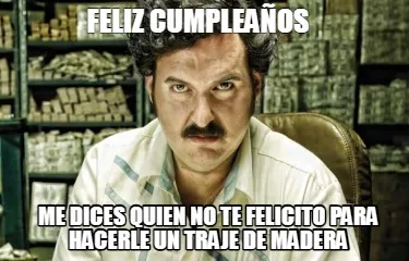 Make your own "Feliz cumpleaños Me dices quien no te felicito para hacerle un traje de madera" meme with MemeCreator's free online meme generator. Add text, stickers, and drawings — then download or share. No watermark, no sign-up required.
