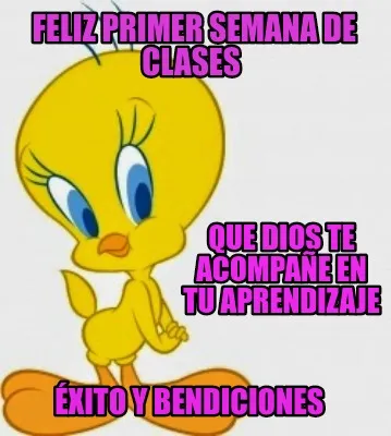 Create FELIZ PRIMER SEMANA DE CLASES ÉXITO Y BENDICIONES Que Dios te acompañe en tu Meme