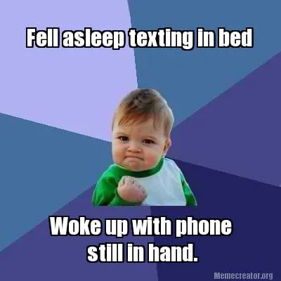 Create Fell asleep texting in bed Woke up with phone still in hand. Meme