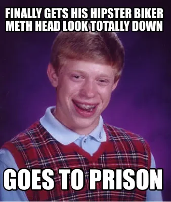 Finally gets his hipster biker meth head look totally down Goes to prison Meme Template