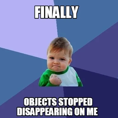 Finally objects stopped disappearing on me Meme Template