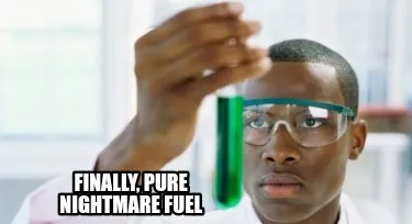 Make your own "Finally, Pure nightmare fuel" meme with MemeCreator's free online meme generator. Add text, stickers, and drawings — then download or share. No watermark, no sign-up required.