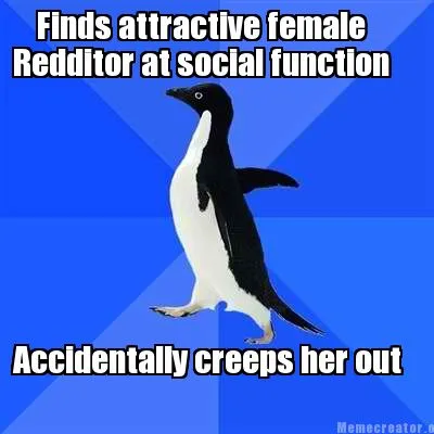 Create Finds attractive female Redditor at social function Accidentally creeps her out Meme