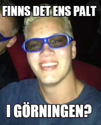 Make your own "Finns det ens palt I Görningen?" meme with MemeCreator's free online meme generator. Add text, stickers, and drawings — then download or share. No watermark, no sign-up required.