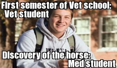 Create First semester of Vet school: Discovery of the horse: Vet student Med student Meme