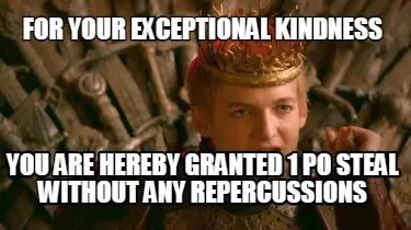 For your exceptional kindness You are hereby granted 1 PO steal without any repe Meme Template