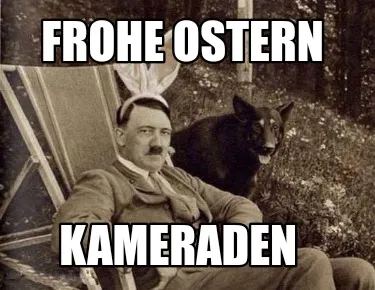 Make your own "Frohe Ostern Kameraden" meme with MemeCreator's free online meme generator. Add text, stickers, and drawings — then download or share. No watermark, no sign-up required.