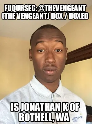 Fuqursec: @TheVengeant (The Vengeant) Dox / Doxed is Jonathan K of Bothell, WA Meme Template