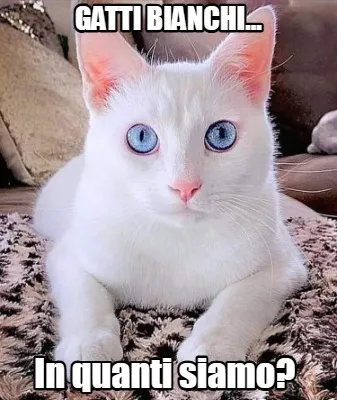 Make your own "Funny gatti bianchi... In quanti siamo?" meme with MemeCreator's free online meme generator. Add text, stickers, and drawings — then download or share. No watermark, no sign-up required.