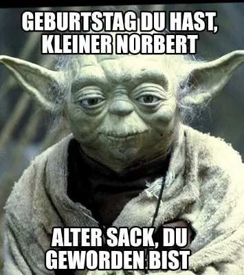 Make your own "Geburtstag Du hast, kleiner Norbert Alter Sack, Du geworden bist" meme with MemeCreator's free online meme generator. Add text, stickers, and drawings — then download or share. No watermark, no sign-up required.