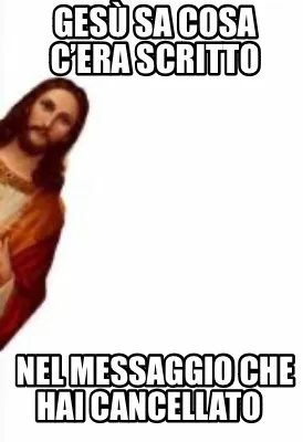 Make your own "Funny Gesù sa cosa c’era scritto Nel messaggio che hai cancellato" meme with MemeCreator's free online meme generator. Add text, stickers, and drawings — then download or share. No watermark, no sign-up required.
