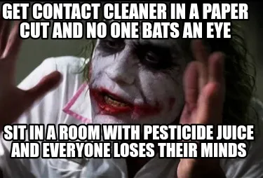 Create Funny Get contact cleaner in a paper cut and no one bats an eye Sit in a room with pes Meme