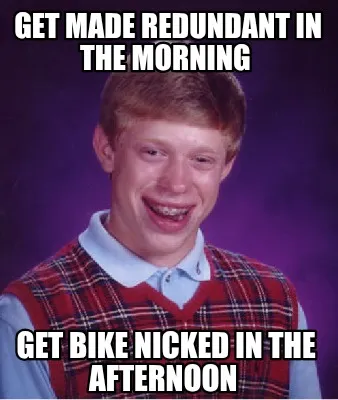 Create Get made redundant in the morning Get bike nicked in the afternoon Meme