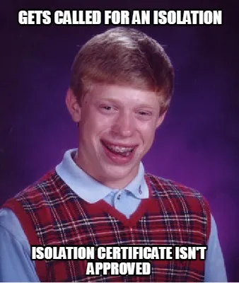 Funny Gets called for an isolation isolation certificate isn't approved Meme Template