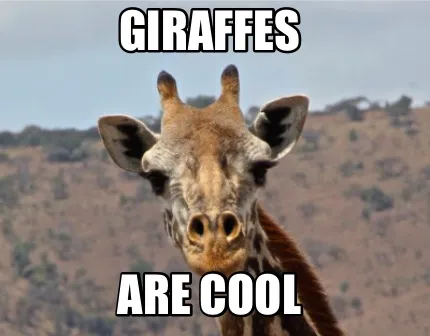 Make your own "Giraffes Are Cool" meme with MemeCreator's free online meme generator. Add text, stickers, and drawings — then download or share. No watermark, no sign-up required.