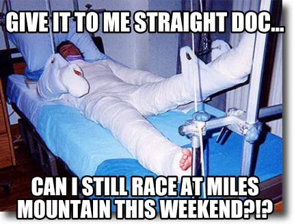 Give it to me straight doc... Can I still race at Miles Mountain this weekend?!? Meme Template