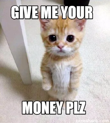 Make your own "Give me your MONEY plz" meme with MemeCreator's free online meme generator. Add text, stickers, and drawings — then download or share. No watermark, no sign-up required.