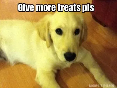Make your own "Give more treats pls" meme with MemeCreator's free online meme generator. Add text, stickers, and drawings — then download or share. No watermark, no sign-up required.