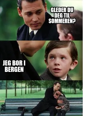 Make your own "Funny Gleder du deg til sommeren? Jeg bor i Bergen" meme with MemeCreator's free online meme generator. Add text, stickers, and drawings — then download or share. No watermark, no sign-up required.