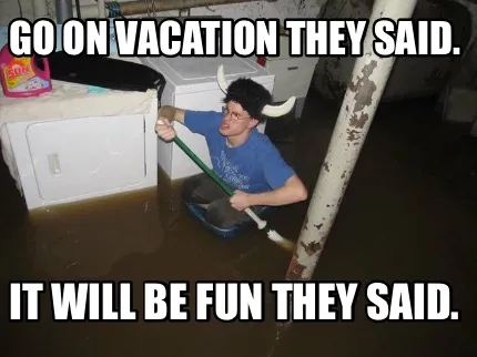 Make your own "Go on vacation they said. It will be fun they said." meme with MemeCreator's free online meme generator. Add text, stickers, and drawings — then download or share. No watermark, no sign-up required.