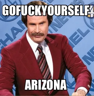 Make your own "GoFuckyourself Arizona" meme with MemeCreator's free online meme generator. Add text, stickers, and drawings — then download or share. No watermark, no sign-up required.