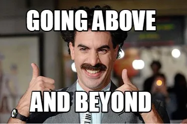 Make your own "Funny Going Above And Beyond" meme with MemeCreator's free online meme generator. Add text, stickers, and drawings — then download or share. No watermark, no sign-up required.
