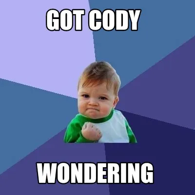 Make your own "Funny Got Cody Wondering" meme with MemeCreator's free online meme generator. Add text, stickers, and drawings — then download or share. No watermark, no sign-up required.