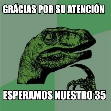 Make your own "Funny Grácias por su atención Esperamos nuestro 35" meme with MemeCreator's free online meme generator. Add text, stickers, and drawings — then download or share. No watermark, no sign-up required.
