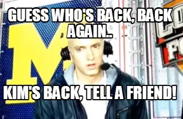 Funny Guess who's back, back again.. Kim's back, tell a friend! Meme Template