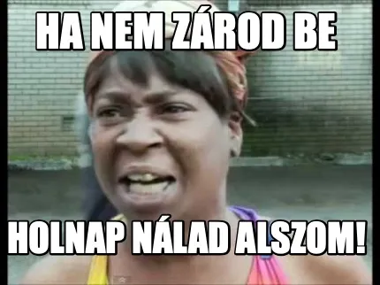 Make your own "Ha nem zárod be holnap nálad alszom!" meme with MemeCreator's free online meme generator. Add text, stickers, and drawings — then download or share. No watermark, no sign-up required.