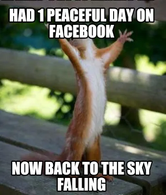 Create Had 1 peaceful day on facebook Now back to the sky falling Meme