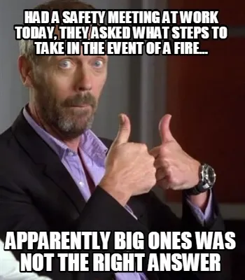 Create Had a safety meeting at work today, they asked what steps to take in the event o Meme