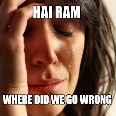 Make your own "Hai ram Where did we go wrong" meme with MemeCreator's free online meme generator. Add text, stickers, and drawings — then download or share. No watermark, no sign-up required.