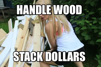 Make your own "Handle wood Stack dollars" meme with MemeCreator's free online meme generator. Add text, stickers, and drawings — then download or share. No watermark, no sign-up required.
