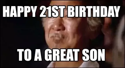 Make your own "Happy 21st Birthday To a Great Son" meme with MemeCreator's free online meme generator. Add text, stickers, and drawings — then download or share. No watermark, no sign-up required.