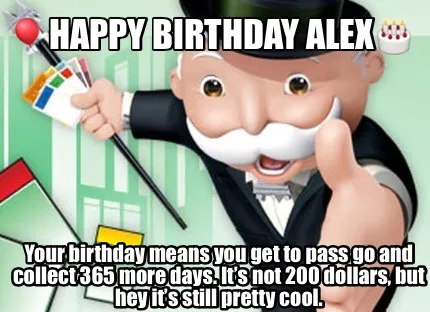 Create ????Happy Birthday Alex???? Your birthday means you get to pass go and collect 3 Meme