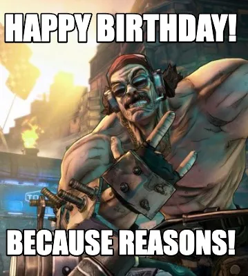 Make your own "Happy birthday! Because reasons!" meme with MemeCreator's free online meme generator. Add text, stickers, and drawings — then download or share. No watermark, no sign-up required.