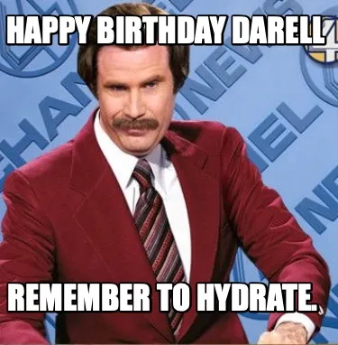 Funny Happy Birthday Darell Remember to Hydrate. Meme Template