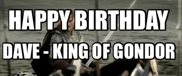 Make your own "Happy Birthday Dave - King of Gondor" meme with MemeCreator's free online meme generator. Add text, stickers, and drawings — then download or share. No watermark, no sign-up required.