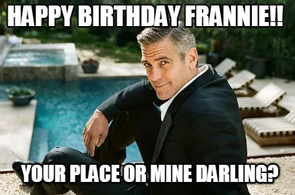 Funny Happy Birthday Frannie!! Your place or mine darling? Meme Template