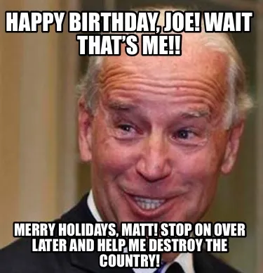Create Funny Happy Birthday, Joe! Wait that’s me!! Merry Holidays, Matt! Stop on over later Meme