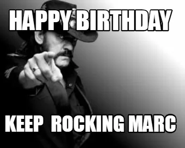 Make your own "Happy Birthday keep Rocking Marc" meme with MemeCreator's free online meme generator. Add text, stickers, and drawings — then download or share. No watermark, no sign-up required.