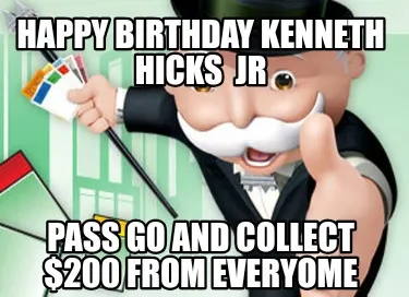 Happy birthday kenneth hicks jr Pass go and collect $200 from everyome Meme Template