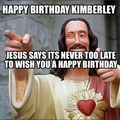 Create Funny Happy Birthday Kimberley Jesus says its never too late to wish you a Happy Birth Meme
