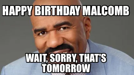Funny HAPPY BIRTHDAY MALCOMB WAIT, SORRY, THAT'S TOMORROW Meme Template
