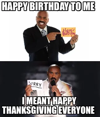 Create Happy Birthday To Me I meant Happy Thanksgiving Everyone Meme